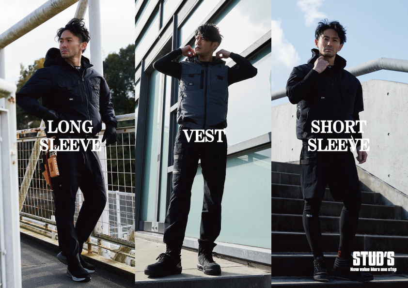 STUD'Sスタッズは、ラグジュアリーワークウェアを販売しています。厳選したハイクオリティな素材でできた作業着(上下)は、飽きのこないスマートなデザインで、職場ではもちろん、プライベートでも着用可能です。半袖のシャツやデニムブルゾン、パンツ、ベストなど様々なアイテムを販売しています。