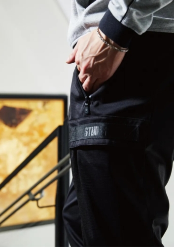 ジョガーパンツは前作のS1417を引き継いだスポーツライクなシルエットに収納力をプラスさせています。すっきりした見た目ながら両脇ポケット、カーゴポケット、後ろポケットと収納力が抜群です。セットアップの着用はもちろんですがパンツ単体でも活躍します!