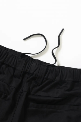 ジョガーパンツは裾をリブ仕様にしたスポーツライクな見た目です。ハイカットやブーツを履く時に足入れがしやすく、裾のダボ付きが少なくスッキリした見た目になります。ウエストはゴム入り+内紐付きで調整が楽なイージーパンツ仕様なのでベルトが無くても着用できます。(ベルトループも付いています。)
